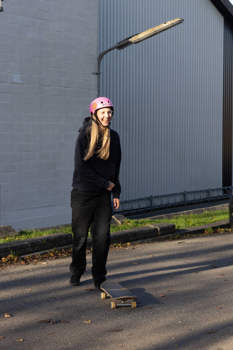 Linnea Larsen med en tailstall på spottet ved siden af pumptracket, Foto af Sofie Ekerdine